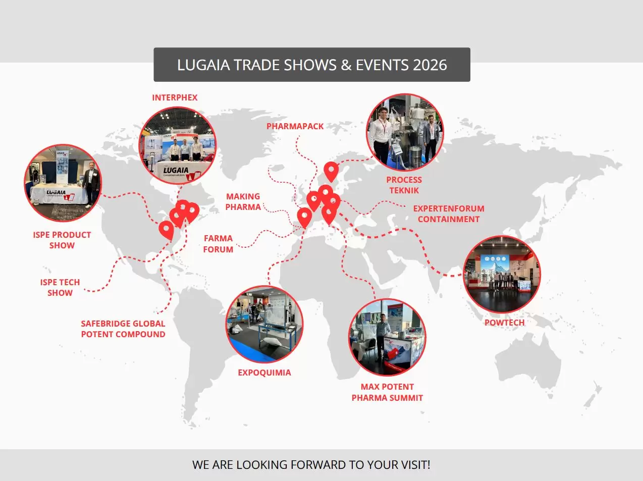 Das Jahr 2026 bietet der Pharma- und Prozessindustrie wieder zahlreiche internationale Messe- und Event-Highlights. Lugaia ist auch dieses Jahr wieder mit dabei – erleben Sie uns live vor Ort und entdecken Sie unsere neuesten Lösungen für Containment, Pulverhandling und sichere Pharma-Prozesse.