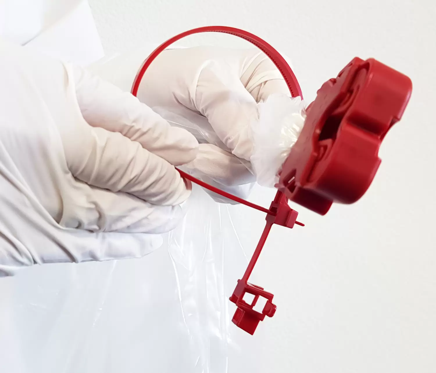 Das bewährte und patentierte SafeSeal Verschluss System (für die Crimpgrößen M und L) gewährleistet einen sicheren Verschluss für jegliche Foliensysteme im Containment-Level OEB 5. Um die SafeSeal Produktpalette in Sicherheit und Ergonomie weiterzuentwickeln, wurde das System erweitert – mit einer zusätzlichen Schutzkappe und einem praktischen Aufhängesystem.