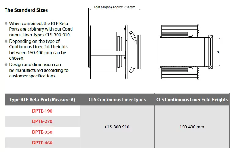 Our Continuous Liner Carrier combined with the RTP Beta-System makes it possible for inward and outward transfers at RTP Alpha interfaces. The Continuous Liner Types CLS-300-910 can be combined with the RTP Beta-Ports 190-460.