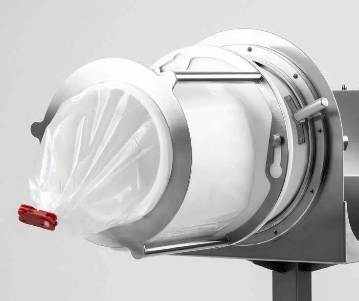 The SafeSeal Crimp is manually pulled over the bag and compressed with special Crimping pliers. The crimp can then be separated using a cutting tool. Crucial for the closure size is the foil size. The SafeSeal Closure system guarantees Containment-Level OEB 5 (<1μg / m³) in action with Lugaia Continuous Liners and thus forms the spearhead of the manual lock systems. Through the deployment of the SafeSeal Opener, the closure can be removed again without any additional cutting processes. The entire closure system consists of SafeSeal Crimps, a crimp and a cutting tool and it can be completed with a protective cap and hanger.